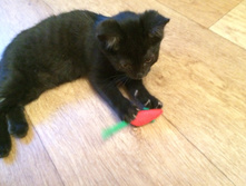 Котенку 3 месяца, она обработана от паразитов, пролечена по результатам анализов, которые сдавала в клинике. Очень любит влажный корм и радуется детскому питанию. Лоточек знает.
